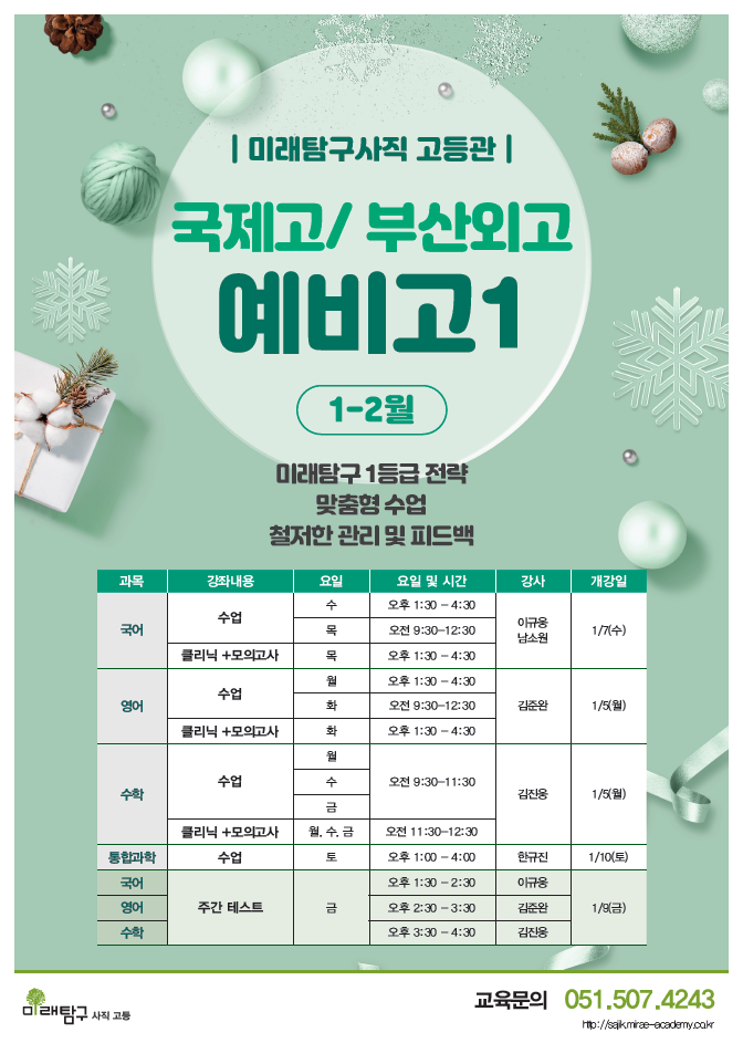 26년 국제고/부산외고 예비고1 (1-2월) 시간표