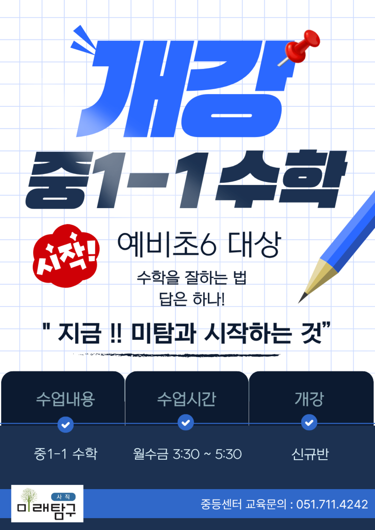 사직미래탐구학원에서는 <중1-1 수학 시작반> 을 개강 합니다.